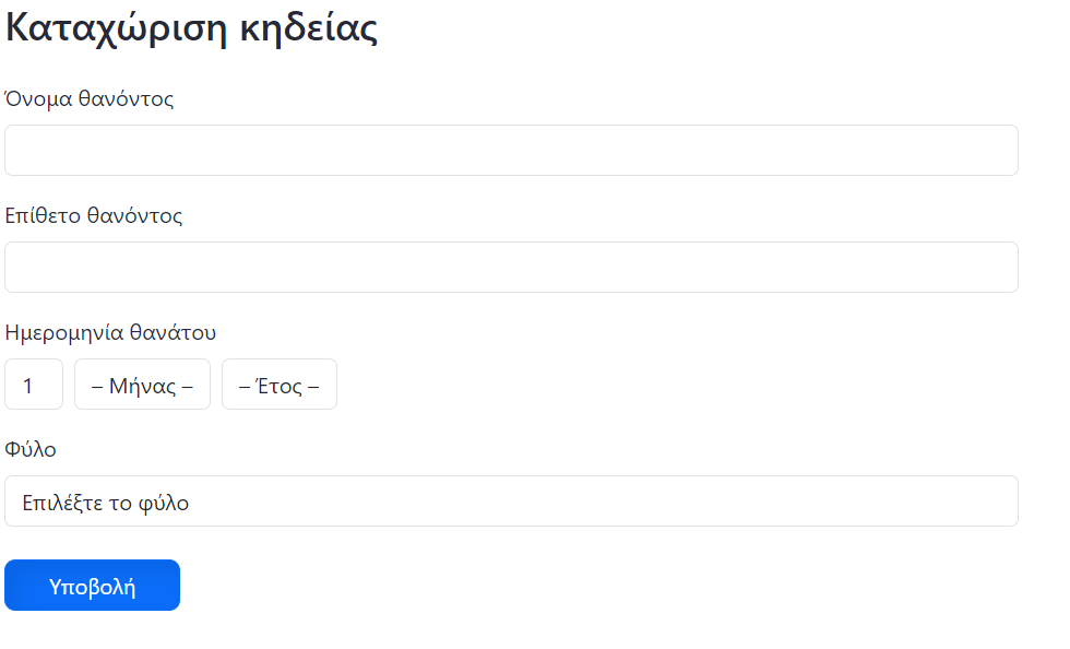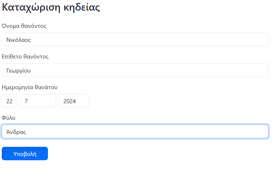 Η δημιουργία μιας καταχώρισης κηδείας στην εφαρμογή μας είναι μια απλή διαδικασία.